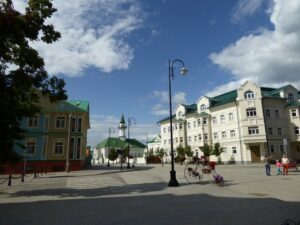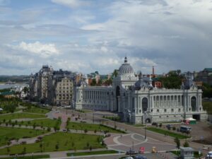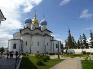 La mosquée qui trône au centre du Kremlin est magnifique avec ses reflets bleus…