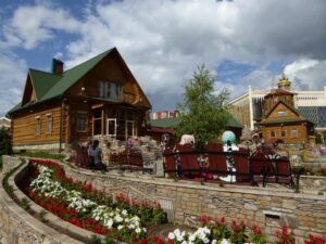 J’arrive très tôt le matin à Kazan. Après avoir dit au revoir à une autre voyageuse solo, une retraitée américaine rencontrée à Nijni-Novgorod, je me mets en route pour parcourir la quarantaine de minutes de marches qui me séparent de mon auberge. Un regard en arrière, jolie gare.
