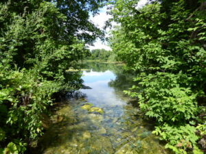 Mais j’arrive finalement, et après une petite marche sur un chemin sinuant le long d’une rivière, je découvre le lac. Malheureusement, des plongeurs sont déjà là… Moi qui voulait un moment tranquille au bord de l’eau, c’est raté. P1020297