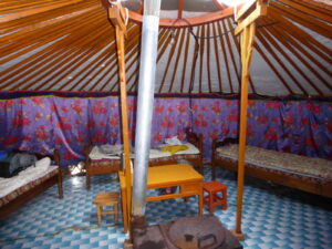 C’est avec grand, grand plaisir que nous nous éloignons de la ville pour retrouver la paix et la liberté des espaces mongols. Une fois arrivés au village, nous nous trouvons un petite yourte (un “ger”, comme on les appelle ici) où passer la nuit. Tout est très calme et beau.