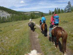In the MS guesthouse of Khatgal, I have the incredible luck to meet two really great French couples. One of them lives in Sweden, the other has been travelling the world for 10 months. For the next few days, they have planned to separate because the women want to go horse riding, and the men want to walk. It’s a great occasion, because I was looking to join a group in order to go horse trekking, and they are looking for someone to share the costs! It’s a done deal, we are leaving the next day. We get an explanation of the route and the general conduct of the next five days by the manager: we are going to move away towards the West, in the mountains, where we are going to camp the first nights before coming back along the coast of the lake.